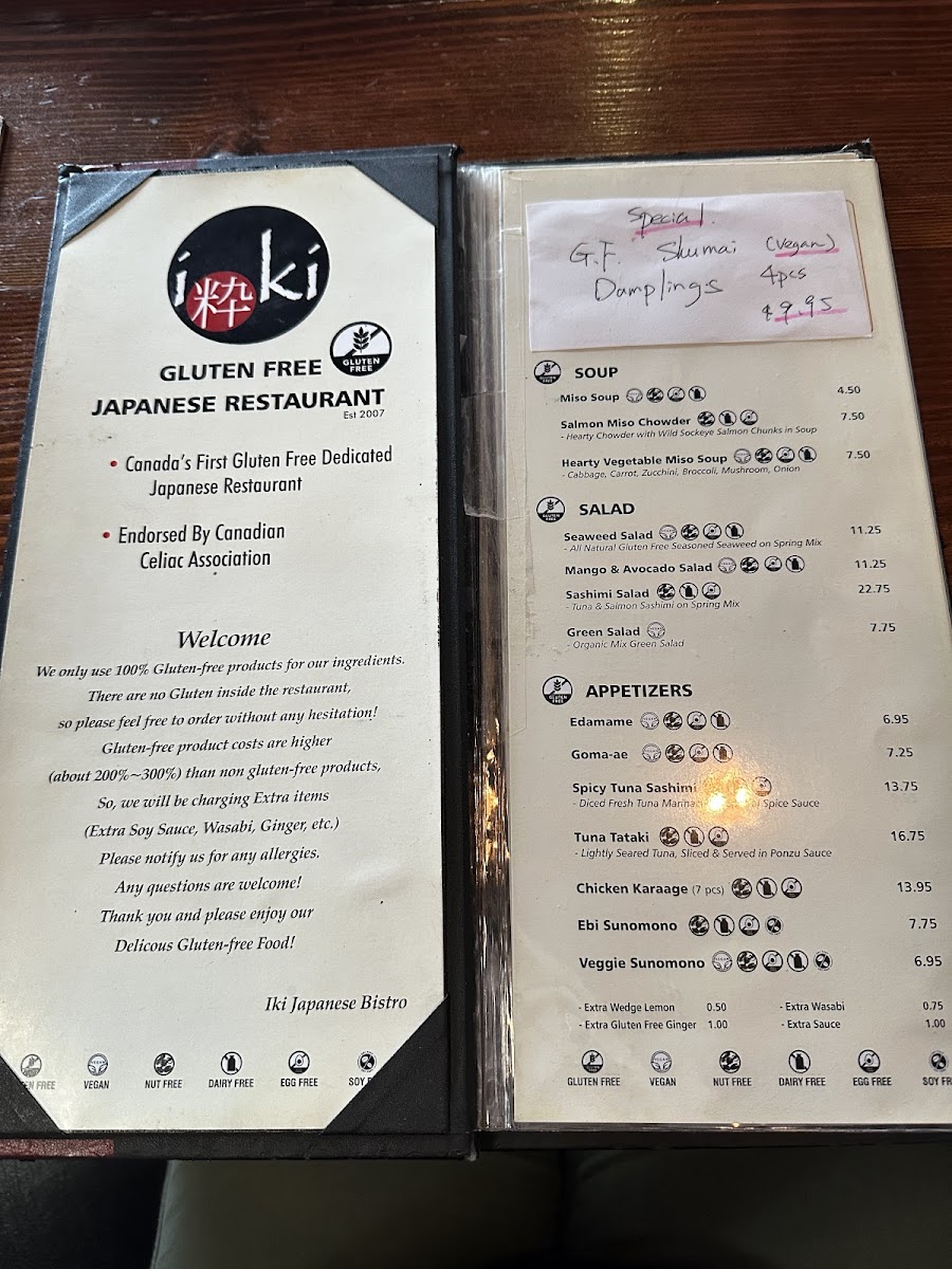 Iki Japanese Restaurant offers a wide array of gluten-free options, making it a fantastic choice for those with dietary restrictions. For sushi lovers, their special rolls like the Spider Roll, Volcano Roll, and Smoke Salmon Roll are highlights, each showcasing fresh, bold flavors. The menu also features a variety of Gluten-Free Nigiri Sushi, such as Toro, Ebi, and Sockeye Salmon. For those seeking a more filling option, the Aburi Assorted Sashimi Bowl and Power Sushi Bowl are popular picks. If you're in the mood for a comforting dish, try the Chicken Teriyaki Rice Noodle Soup or the Vegan Tofu Teriyaki Noodle. A variety of Gluten-Free Salads, including the Seaweed Salad and Mango & Avocado Salad, provide refreshing sides. The Dynamite Roll and Sockeye Salmon Roll are among the most ordered, while the Gluten-Free Sashimi offerings, like Tuna Sashimi and Seared Assorted Sashimi, are perfect for those craving raw delicacies. For a heartier meal, the Salmon Teriyaki Box or Tofu Teriyaki Box from the Special Bento Box menu is a satisfying choice. The Gyoza options, including Pork Gyoza and Veggie Gyoza, offer a delightful start to any meal. To round off the experience, try the crispy Prawn Tempura or the flavorful Fire Tower. With a comprehensive selection of gluten-free dishes, Iki ensures there's something for everyone.